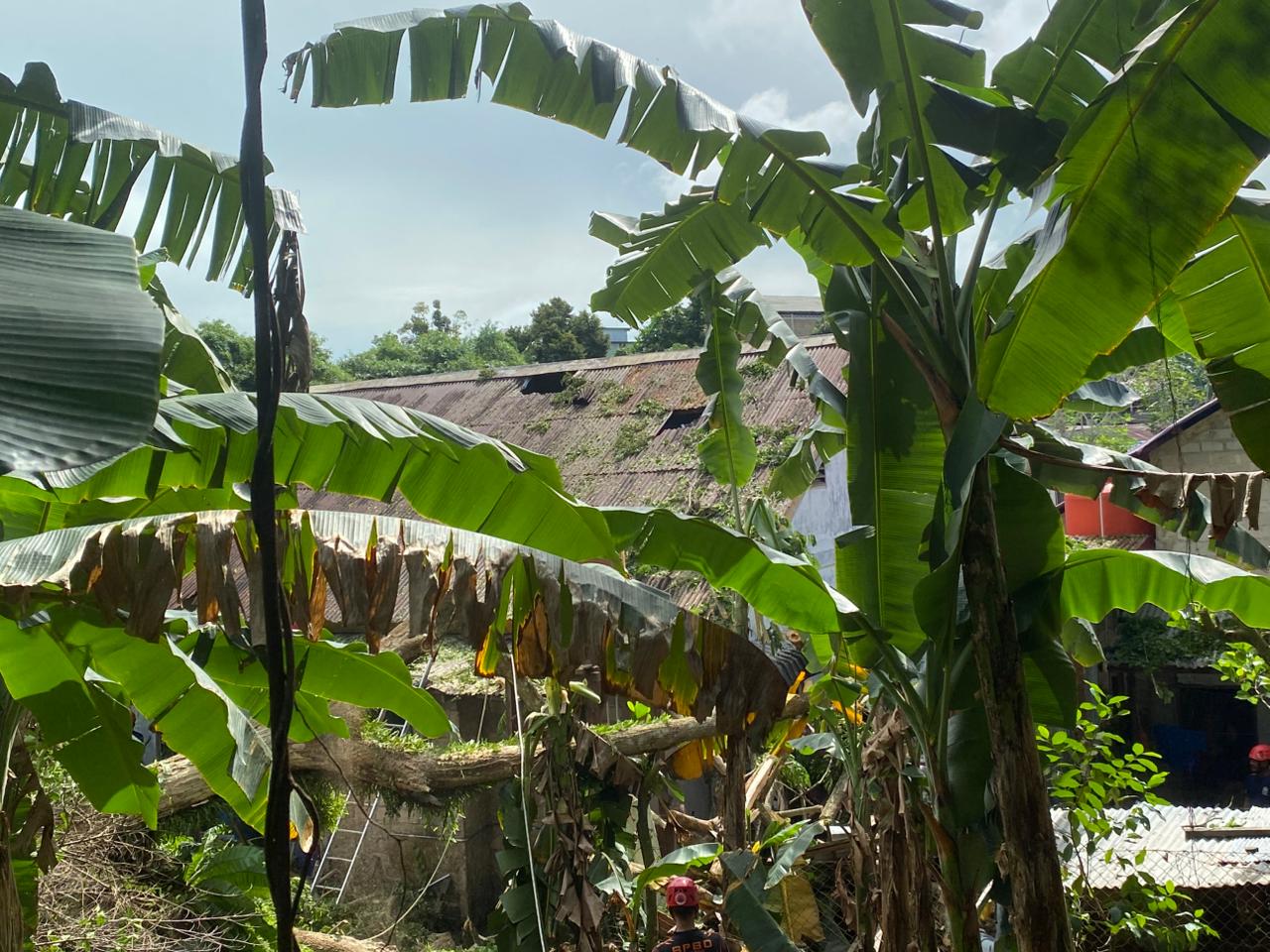“Saya langsung lari keluar, seng sudah bolong, plafon ambrol, daun dan barang nutupin semua,” tuturnya dengan nada masih terguncang.